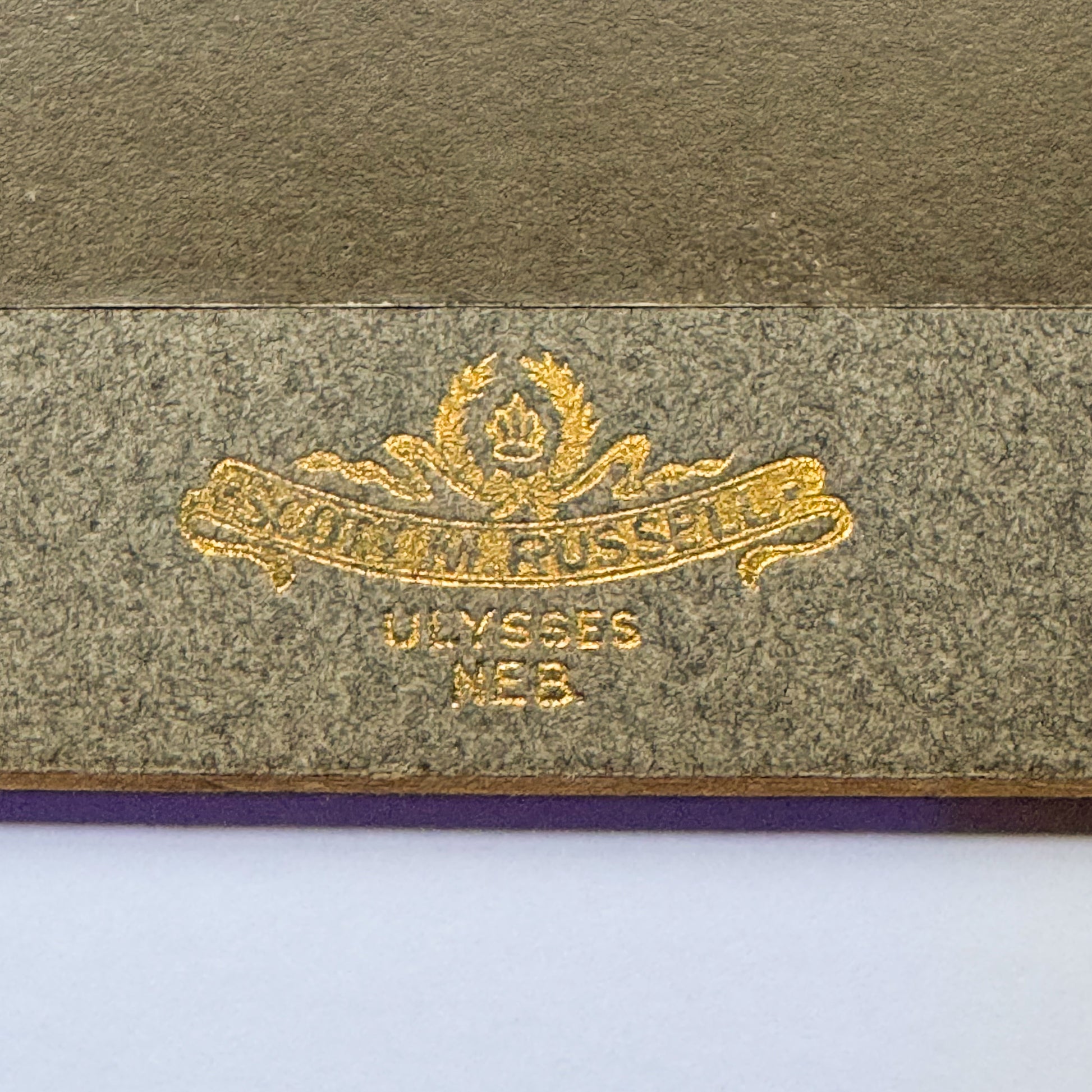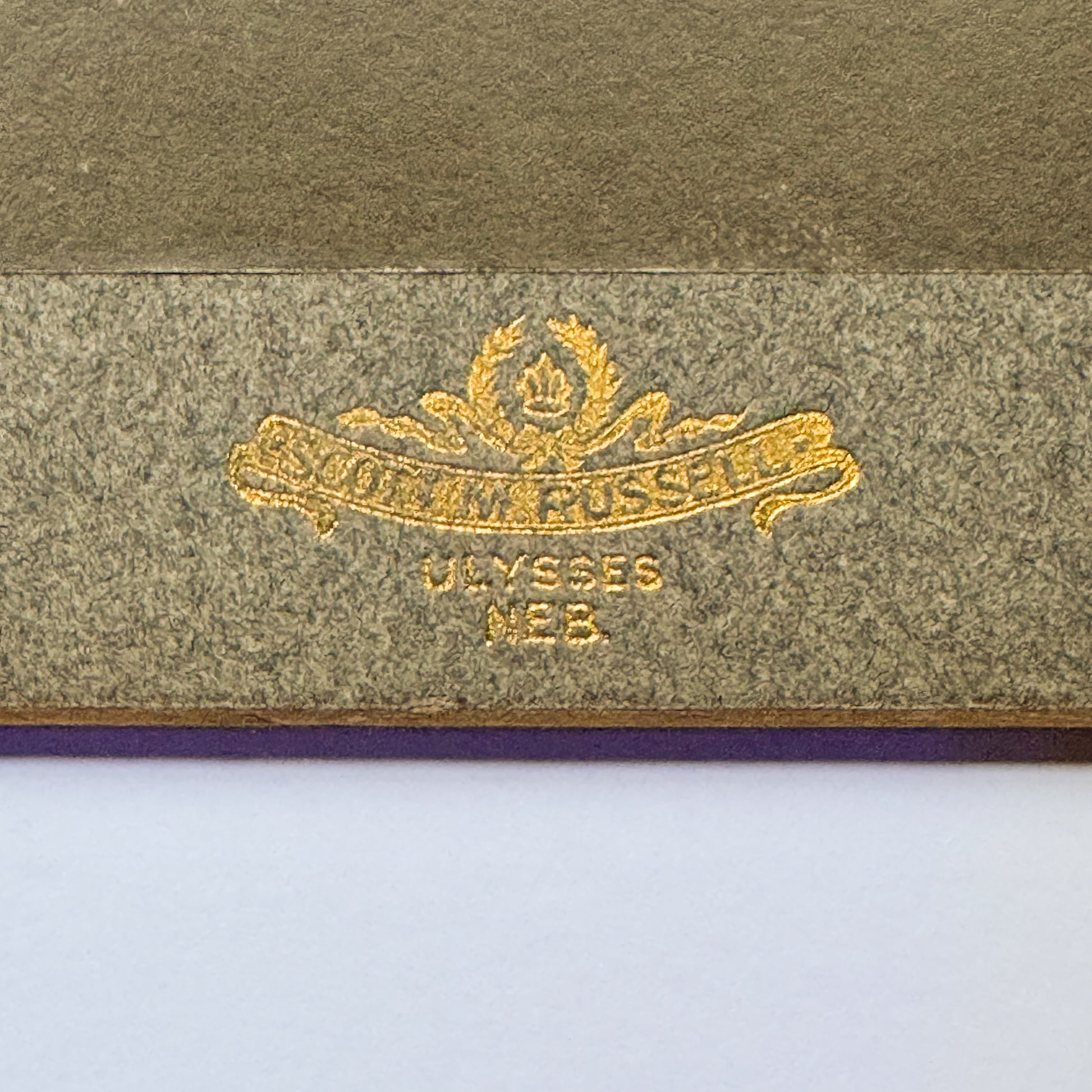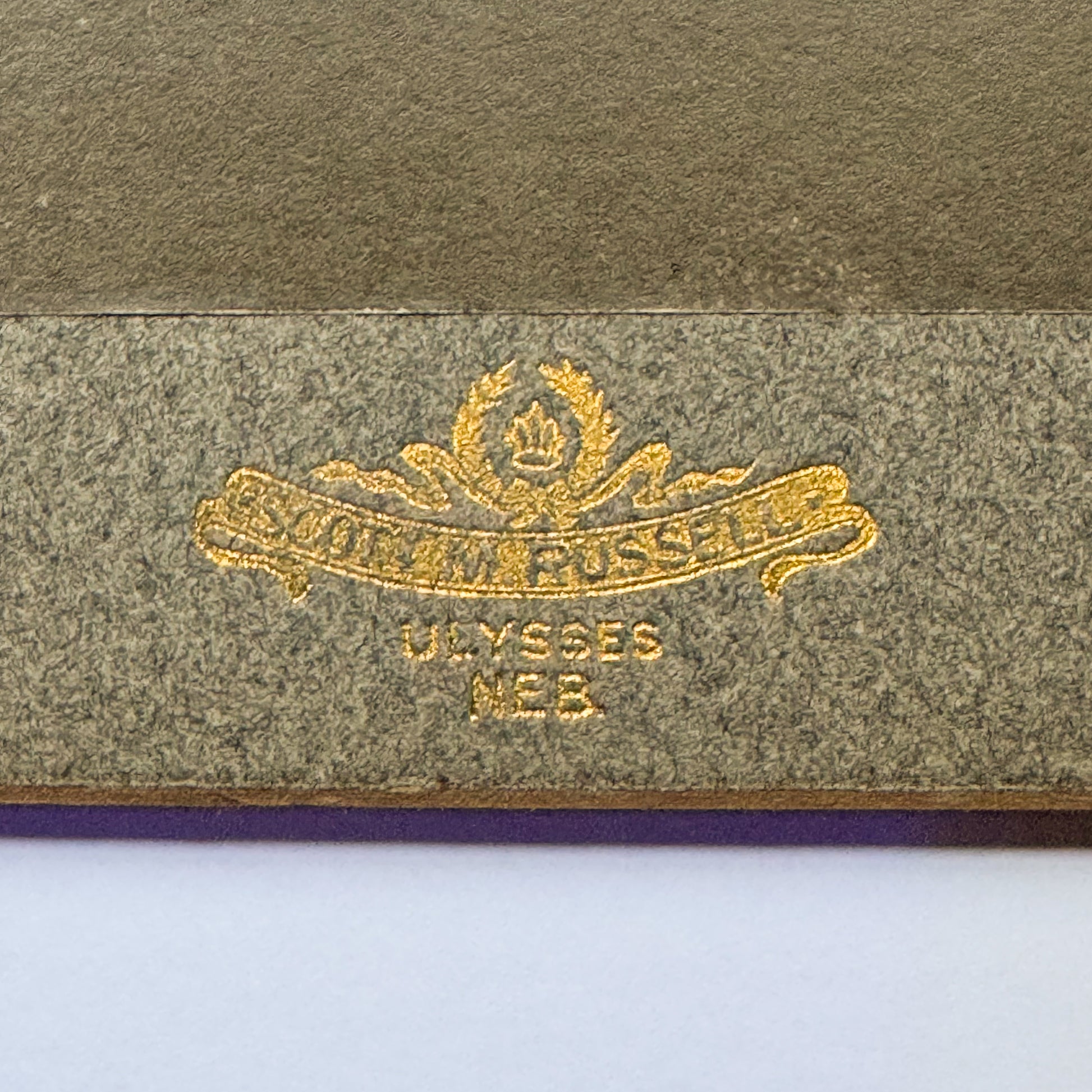 Das Foto ist auf dickem graugrünem Karton gedruckt und trägt die Goldschrift des Fotografen – ein Stil, der typisch für den Mittleren Westen der USA im frühen 20. Jahrhundert war.