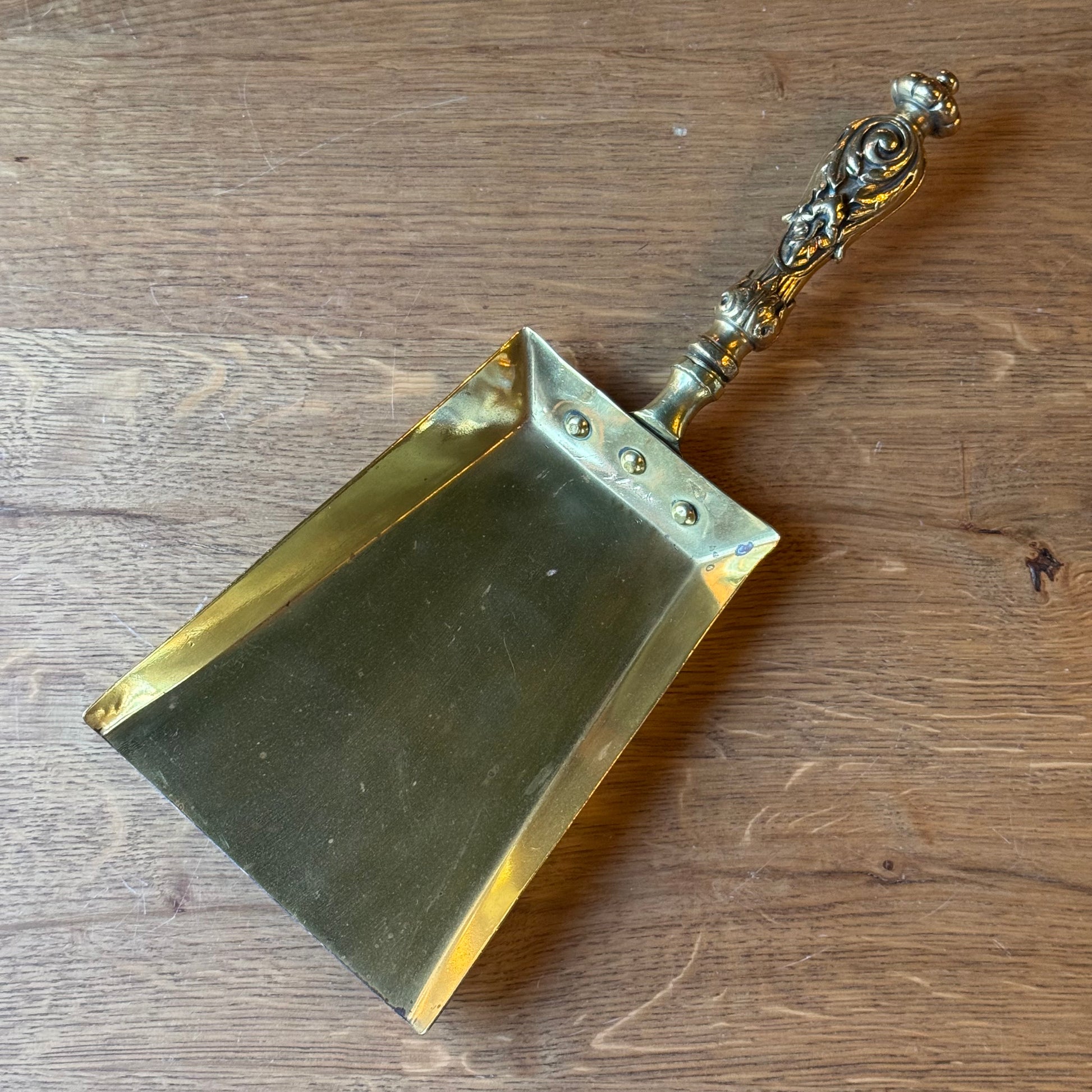 Materiaal: Massief messing handvat, plaatmessing schep