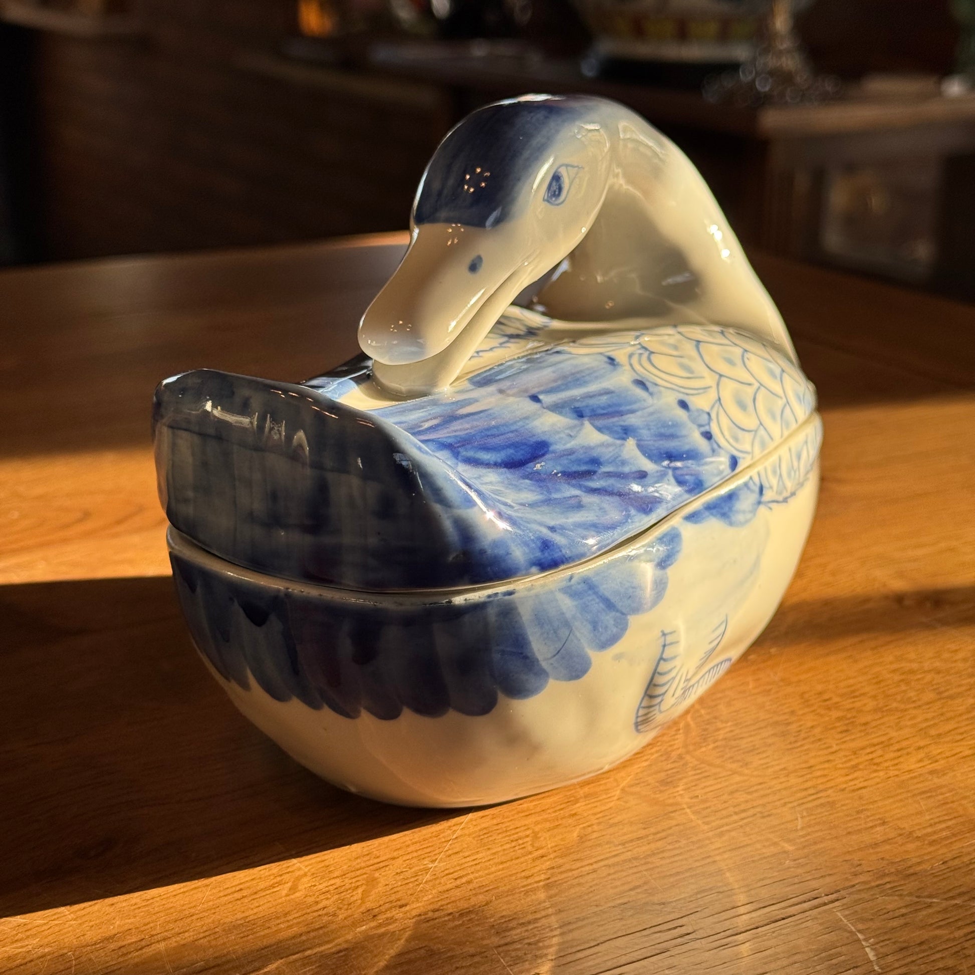 Blue and white swan tureen – hand-painted porcelain