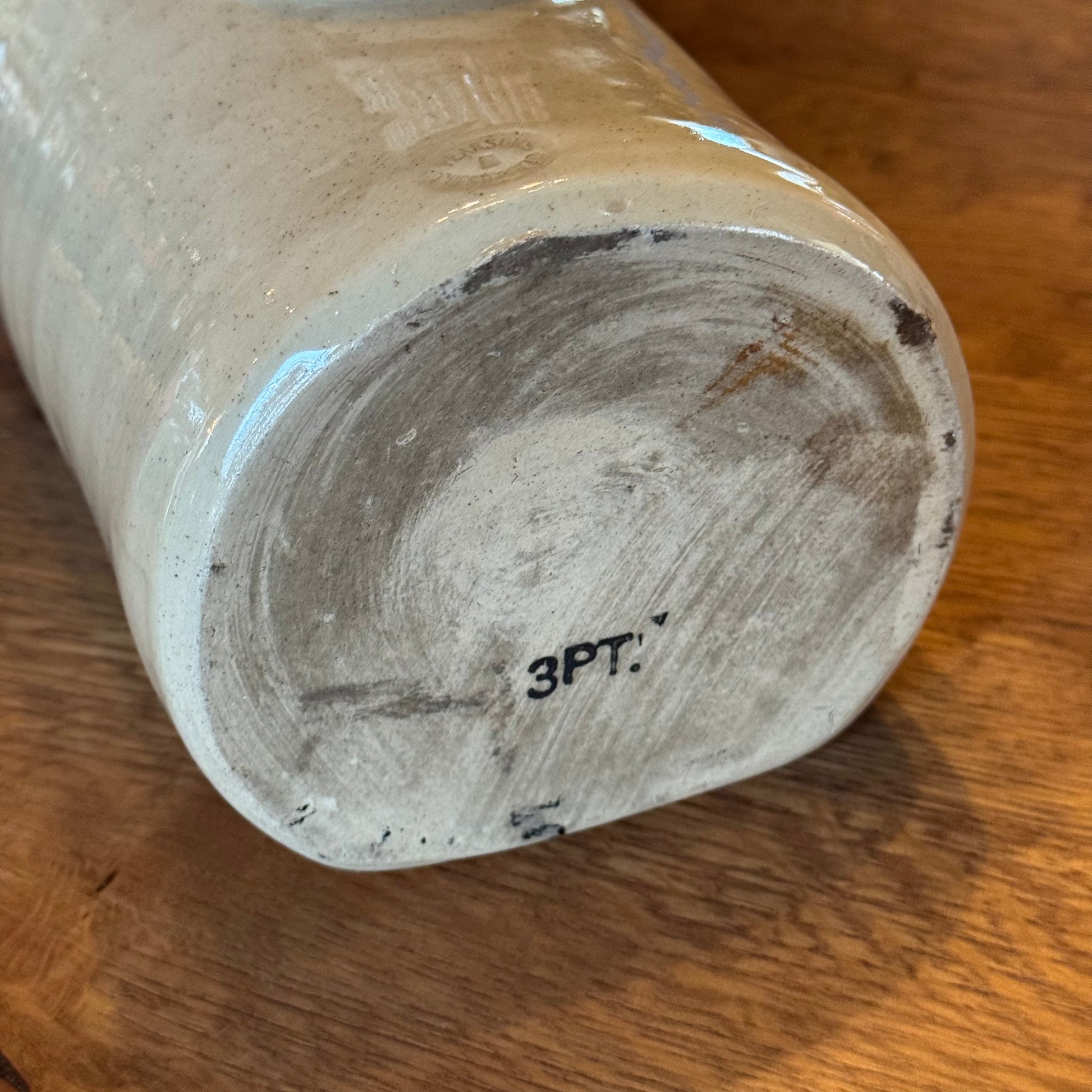 With its subdued sheen, rounded cap, and soft color, this type is one of the most iconic examples of early 20th-century industrial pottery. The jug bears the impressed factory stamp "PEARSON & Co. WHITTINGTON MOOR – CHESTERFIELD" and the capacity 3 PT (3 pint ≈ 1.7 liter).