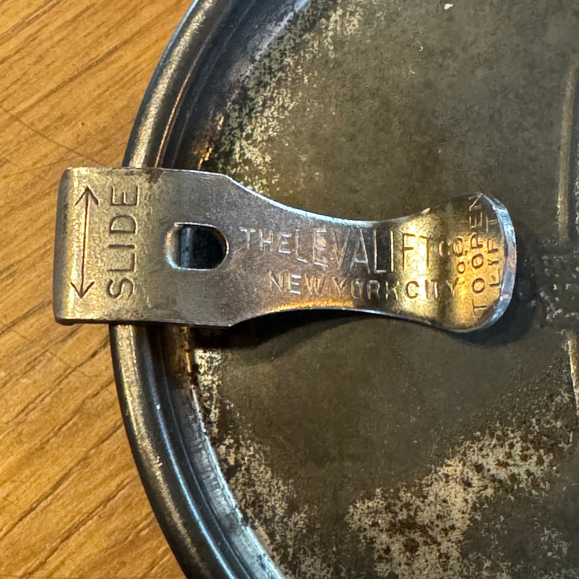 The cylindrical tin has a red lid and the original LevaLift key on the bottom, which was used to open it airtight at the time.