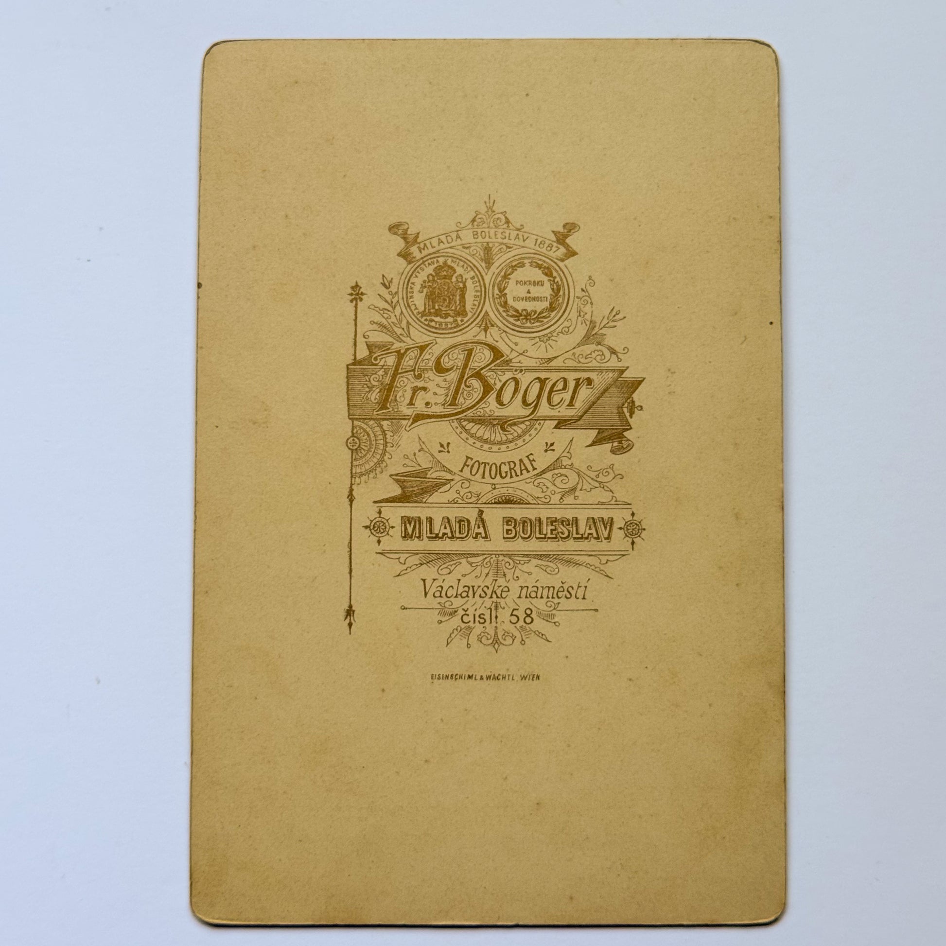 Fotograaf Fr. Böger was actief in Mladá Boleslav vanaf de jaren 1880 en behoorde tot de meest verfijnde provinciale portretfotografen van Bohemen.