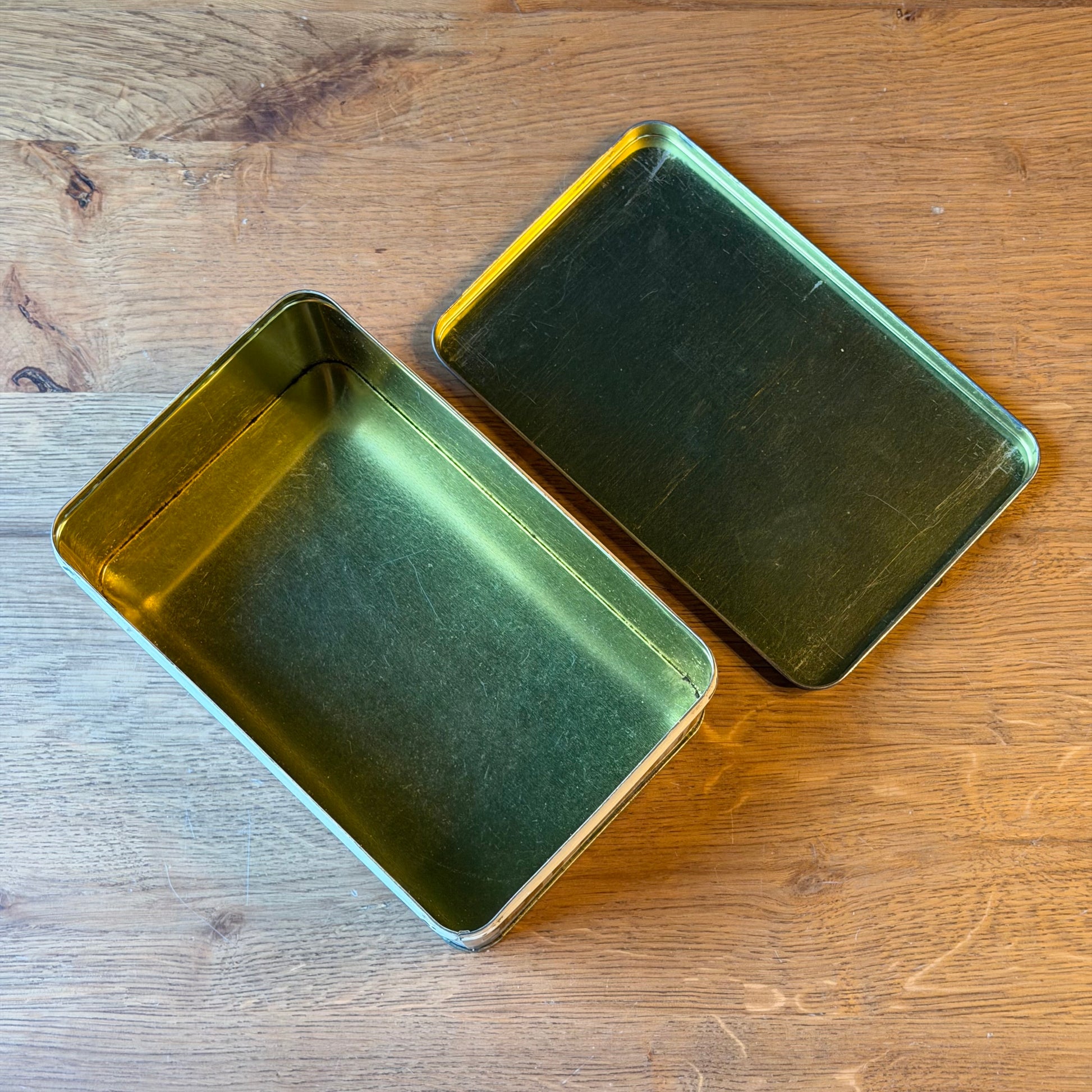 De staat is gebruikt maar verzorgd, met lichte gebruikssporen en kleine krasjes passend bij leeftijd en gebruik. Geen doorgeroeste delen of structurele beschadigingen. Geschikt als verzamelobject, opbergblik of decoratief object.