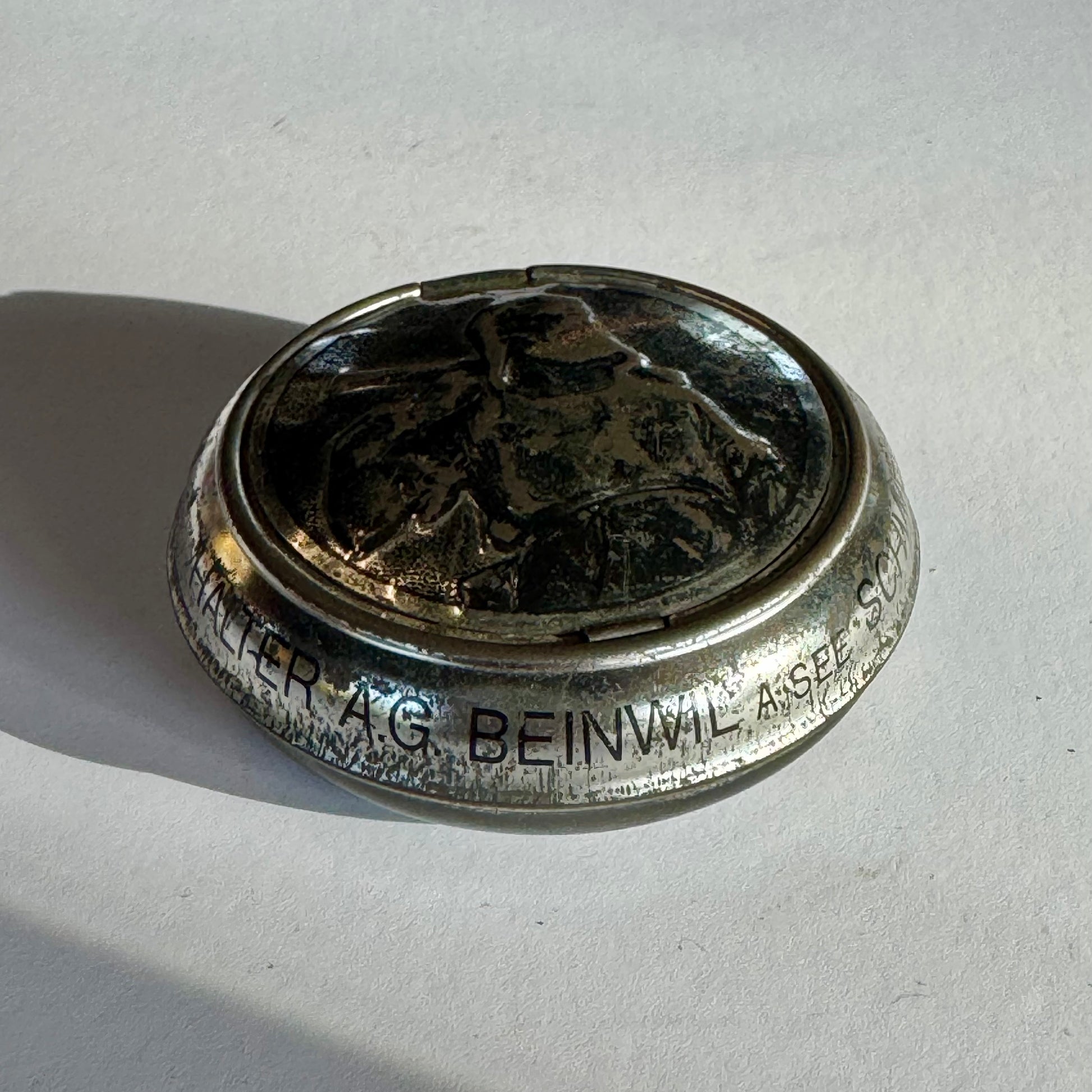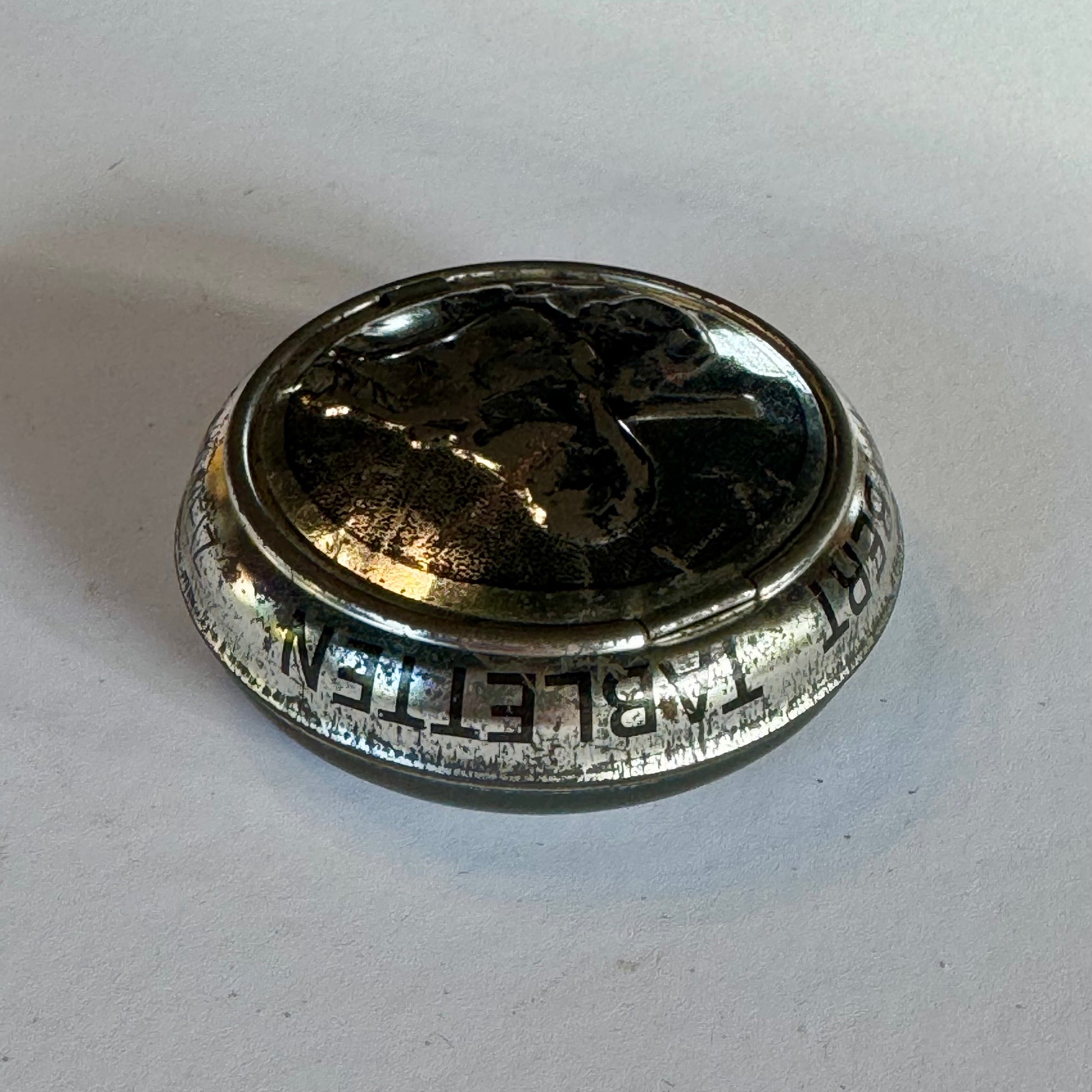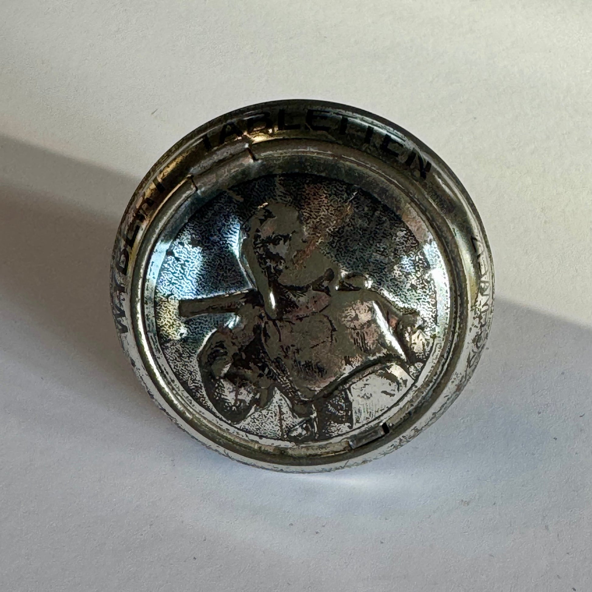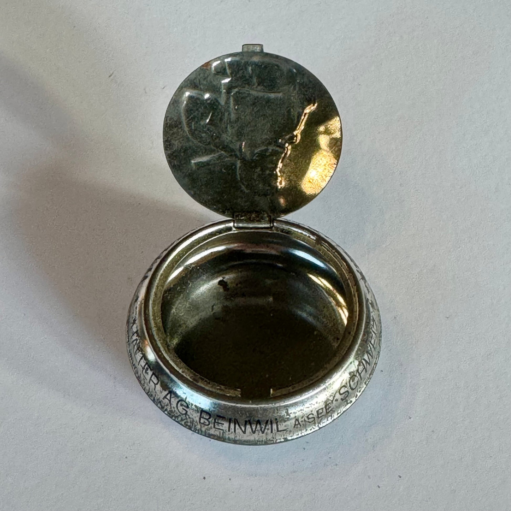 Dit doosje werd oorspronkelijk gebruikt voor verfrissingstabletten of keelpastilles en is een prachtig voorbeeld van vroeg 20e-eeuwse Zwitserse reclameverpakking. Het reliëf en de patina geven het stuk een authentieke vintage uitstraling.
