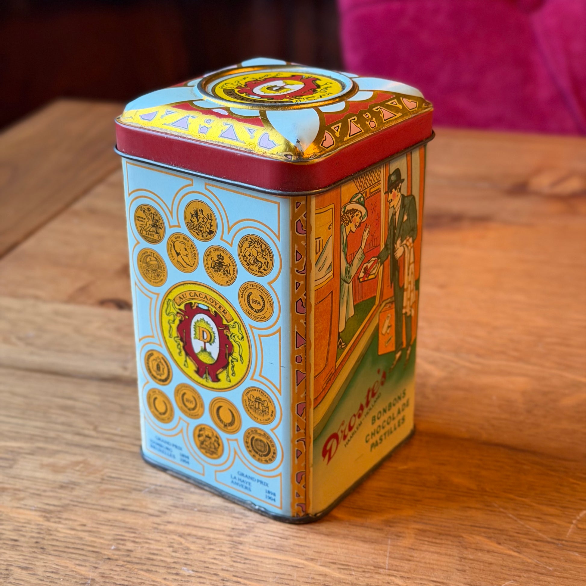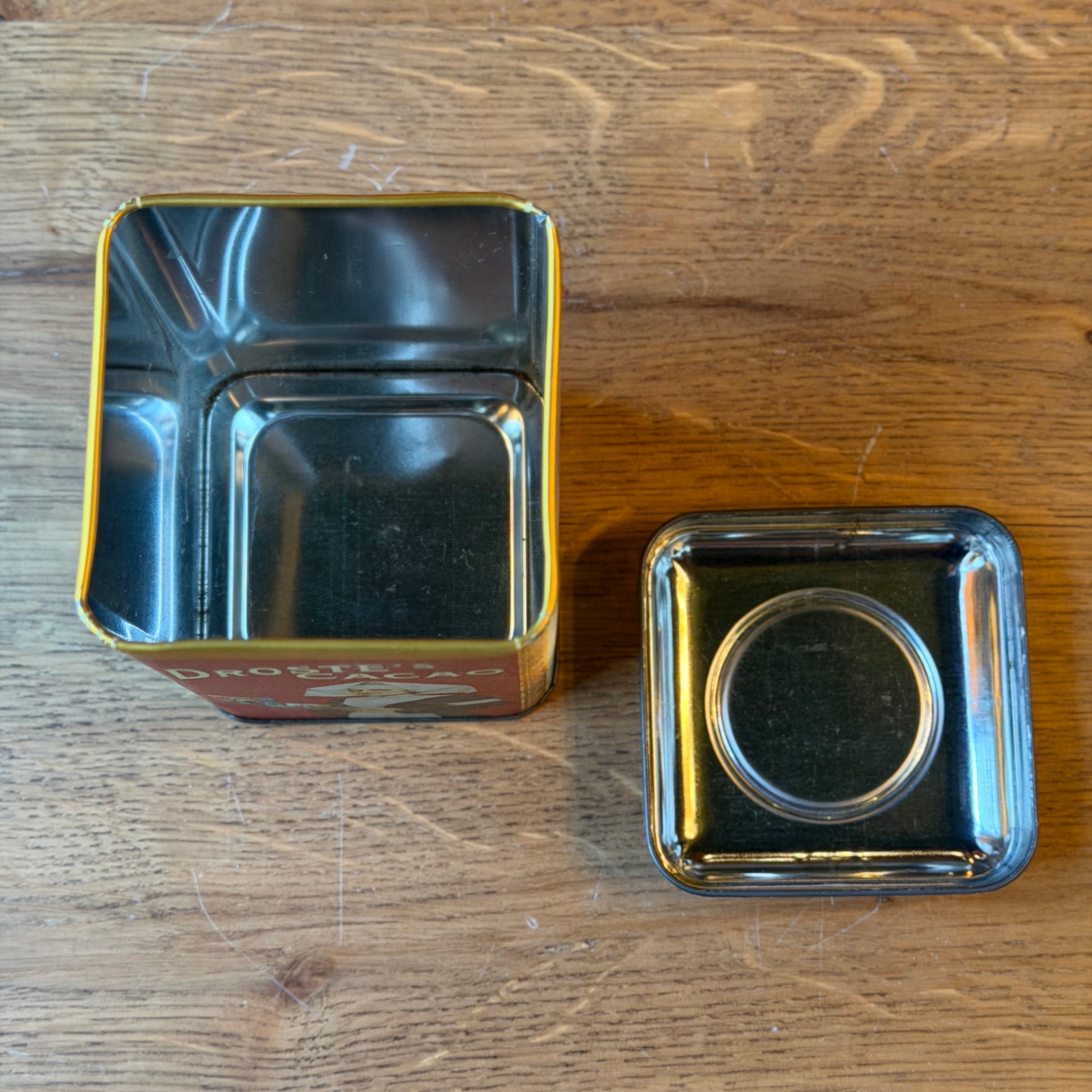 Antiek Droste’s Cocoa Blik met Opbollende Deksel en Cirkel – Exportuitvoering