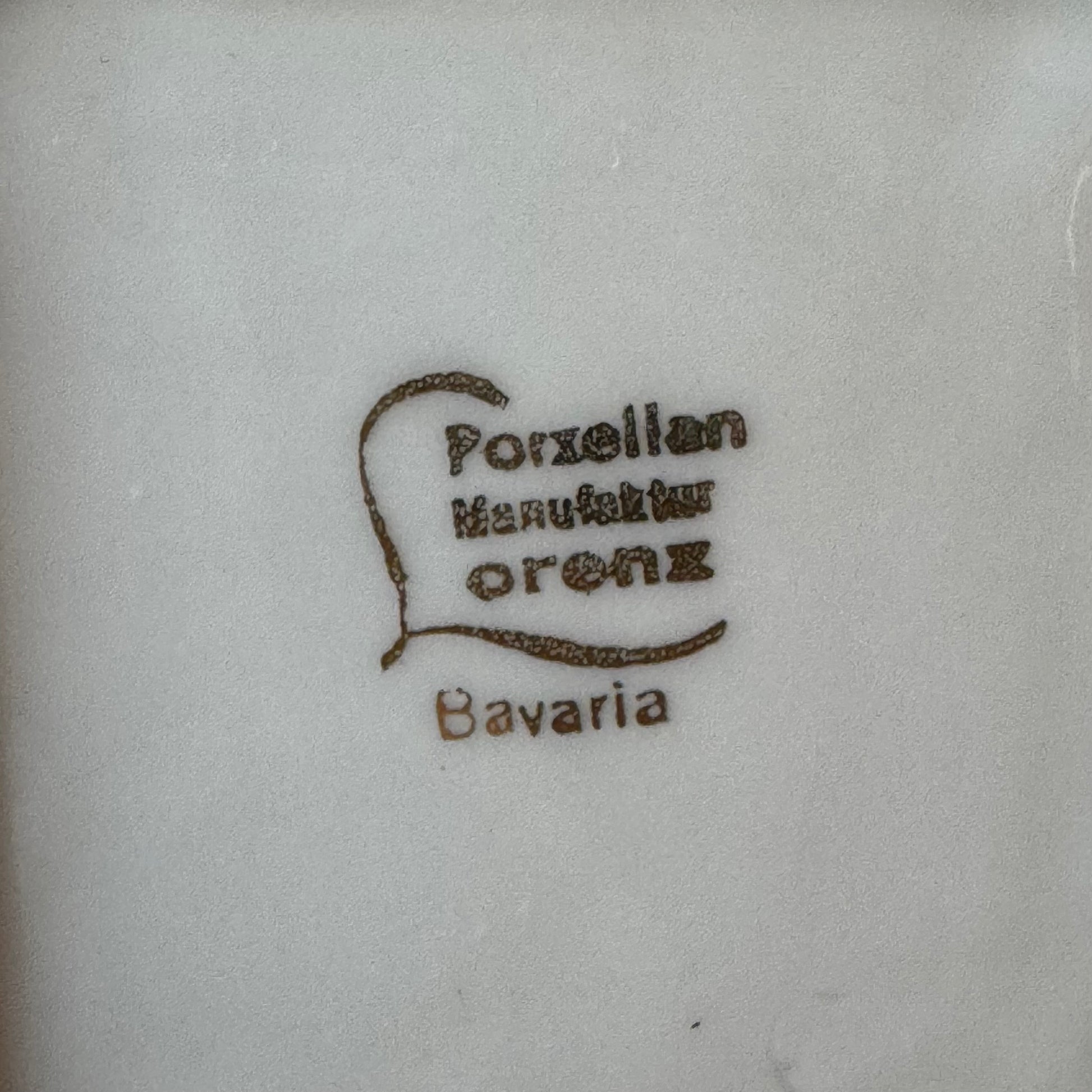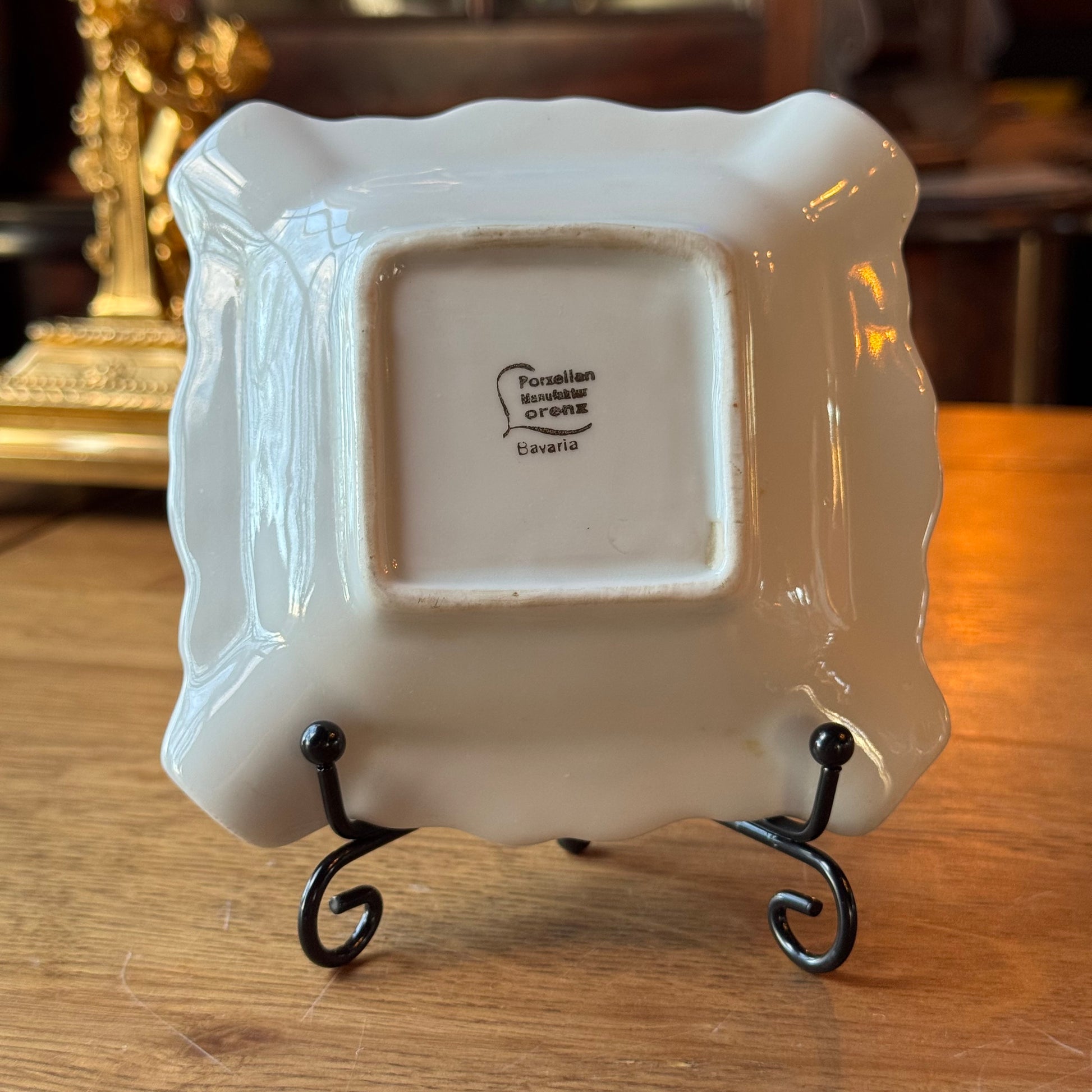 Het schaaltje heeft een speels golvende rand en draagt aan de onderzijde het stempel Porzellanmanufaktur Lorenz – Bavaria, een Duitse fabrikant bekend om zijn fijn gedecoreerde souvenirs.